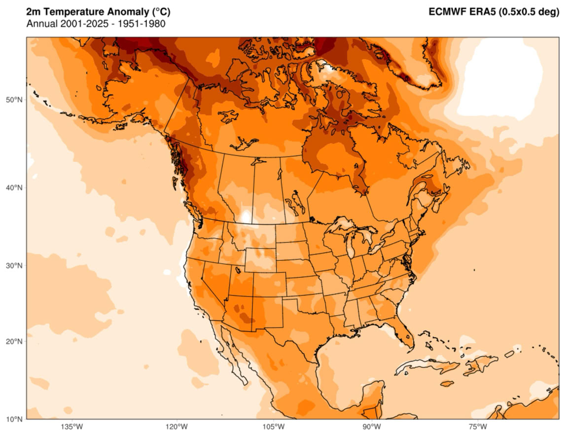 Now in the middle of the third decade of the 21st century, global temperatures are about 1.5°C (2.7°F) higher than at the start of the 20th century. According to global mean annual temperature measurements, in the ten years between 2016 and 2025, we had nine of the warmest years in the 20th and 21st centuries and possibly since the Medieval Warm Period (Figure 3). Most climate scientists now conclude that the warmer temperatures of the 20th and 21st centuries are undoubtedly the result of a human-altered greenhouse effect.