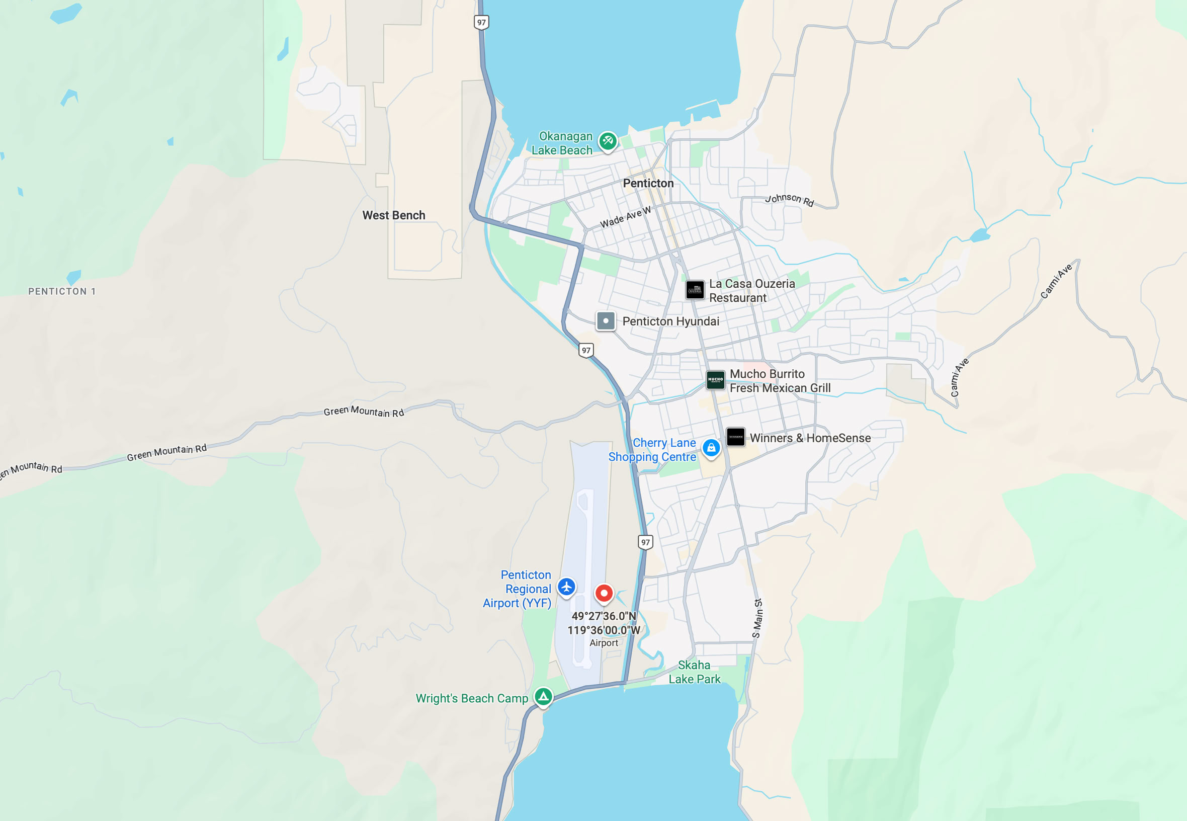 Figure 1 Location of the weather station used to reconstruct Pentictons’s climate record.